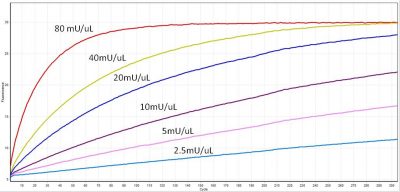 来自 EvaEZ 测定的样本数据,显示了 Taq DNA 聚合酶的滴定。