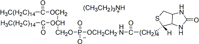 生物素-DHPE (N-(Biotinoyl)-1,2-dihexadecanoyl-sn-glycero-3-phosphoethanolamine, triethylammonium salt) 可用于将亲和素或链霉亲和素与细胞膜或脂质体偶联。