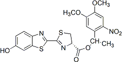 DMNPE-caged D-luciferin (D-Luciferin, 1-(4,5-dimethoxy-2-nitrophenyl)ethyl ester) 是一种 D-luciferin 酯衍生物,可以有效地穿过细胞膜。1,2一旦进入细胞,酯就会不断水解为 D-荧光素。