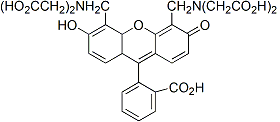 钙黄绿素是一种高度带负电荷的水溶性荧光素衍生物。它的荧光在 6.5 到 12 的范围内几乎与 pH 值无关。