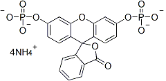FDP(二磷酸荧光素,四铵盐,高纯度)是最敏感的荧光碱性磷酸酶底物。它也是蛋白质酪氨酸磷酸酶 (PTPase) 的优良底物,因此是 PTPase 抑制剂高通量筛选 (HTS) 的首选底物。FDP本身是无色的,但酶促反应的最终产物是绿色荧光染料荧光素。