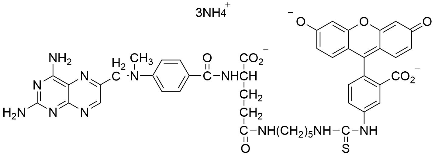 荧光素甲氨蝶呤是一种绿色荧光染料,可用于研究抗代谢物抗性和自发基因扩增。该染料被细胞主动吸收并定量地与二氢叶酸还原酶 (DHFR) 结合。