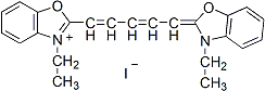 据报道, DODC (DiOC 2 (5)) 与三链体 DNA 以及二聚体发夹四链体 DNA 结合 (1)。染料与三链 DNA 的结合会淬灭染料的荧光并使染料吸收峰发生红移。